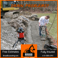 Drainage issues? Give us a call today for a consultation and Free Estimate. If you have water problems, we can give you solutions. www.broadexcavating.com or 610-509-9736