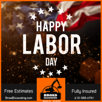 The Broad Excavating team wishes you all a Happy Labor Day weekend! We hope you enjoy what many call the unofficial end of summer. www.broadexcavating.com or 610-588-6941