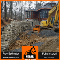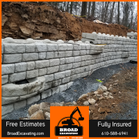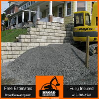 Do you have a sloped area in your yard that is showing signs of erosion? A retaining wall just might be the solution for you. For more information, give the expert team at Broad Excavating a call at 610-588-6941.