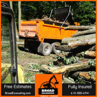 Do you have debris in your yard that requires more than just manpower to move? At Broad Excavating, we not only have the equipment to move these items, but we also offer trucking and hauling services to remove these items completely from your property. For more on these services, please call 610-588-6941.